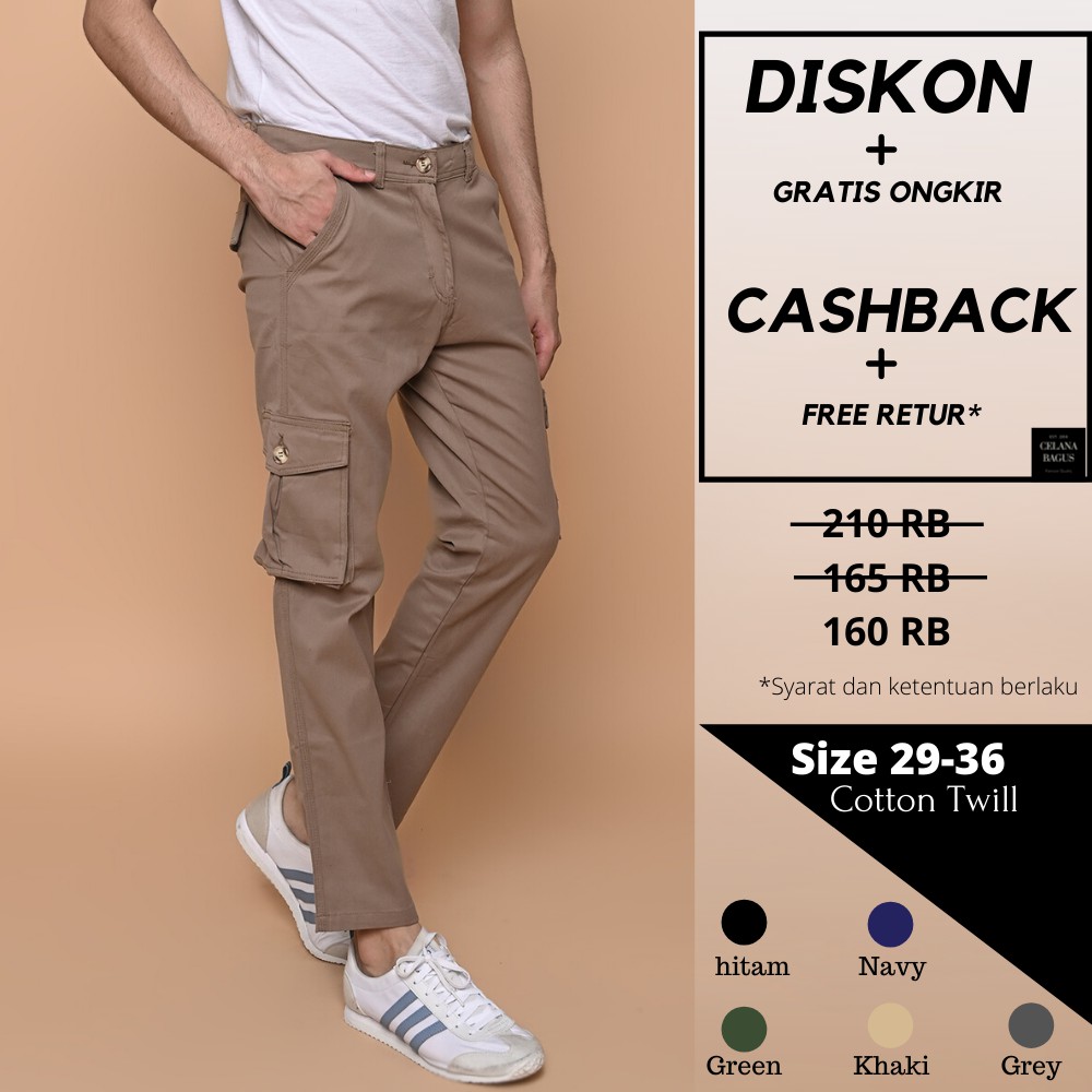 Celana chino kantong samping. Pada celana chino tidak terdapat kantong yang terlihat. Celana chino memiliki model celana trouser biasanya disebut dengan celana sebutan celana kerja formal atau bahan. Jual celana chino cargo kargo panjang original khaki abu cream hijau dengan harga rp165 000 dari toko online celana bagus jakarta barat. Harga dapat ditemui mulai dari terjangkau sampai mahal tergantung dari masing masing merk desainer.