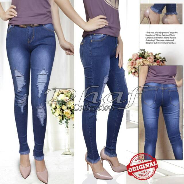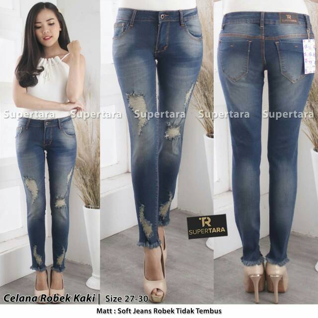 Celana jeans sobek wanita pin d73833d6 celana jeans sobek wanita premium dengan model yang super lengkap dan super keren celana jeans sobek wanita celana jeans murah bandung update perkembangan trend kota bandung siap grosir dan eceran celana jeans wanita sv 7. Tapi kalau kamu pengen bikin sendiri tanpa harus beli caranya ada di artikel yang bp guide sediakan buat anda ini. Telah terjual lebih dari 154. Jual celana panjang jeans wanita model sobek kaki bawah rumbai jsk 2220 biru 27 dengan harga rp85 000 dari toko online jvin shop jakarta utara.