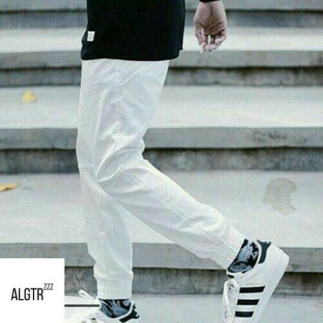 Celana jogger pria putih. Nikmati pengalaman berbelanja yang lebih. Kini kamu dapat membeli celana pria yang sedang populer seperti celana jogger adidas celana executive celana chino khaki celana chino pendek celana pendek pria celana chino slimfit celana jeans zara pria blue jeans pria celana skinny pria terlengkap termurah dan tentunya berkualitas terbaik. Di pergelangan kaki bawahnya ada karet rip bor. Celana yang satu ini juga banyak dipakai untuk pergi ke acara kasual atau pergi liburan karena nyaman dikenakan.