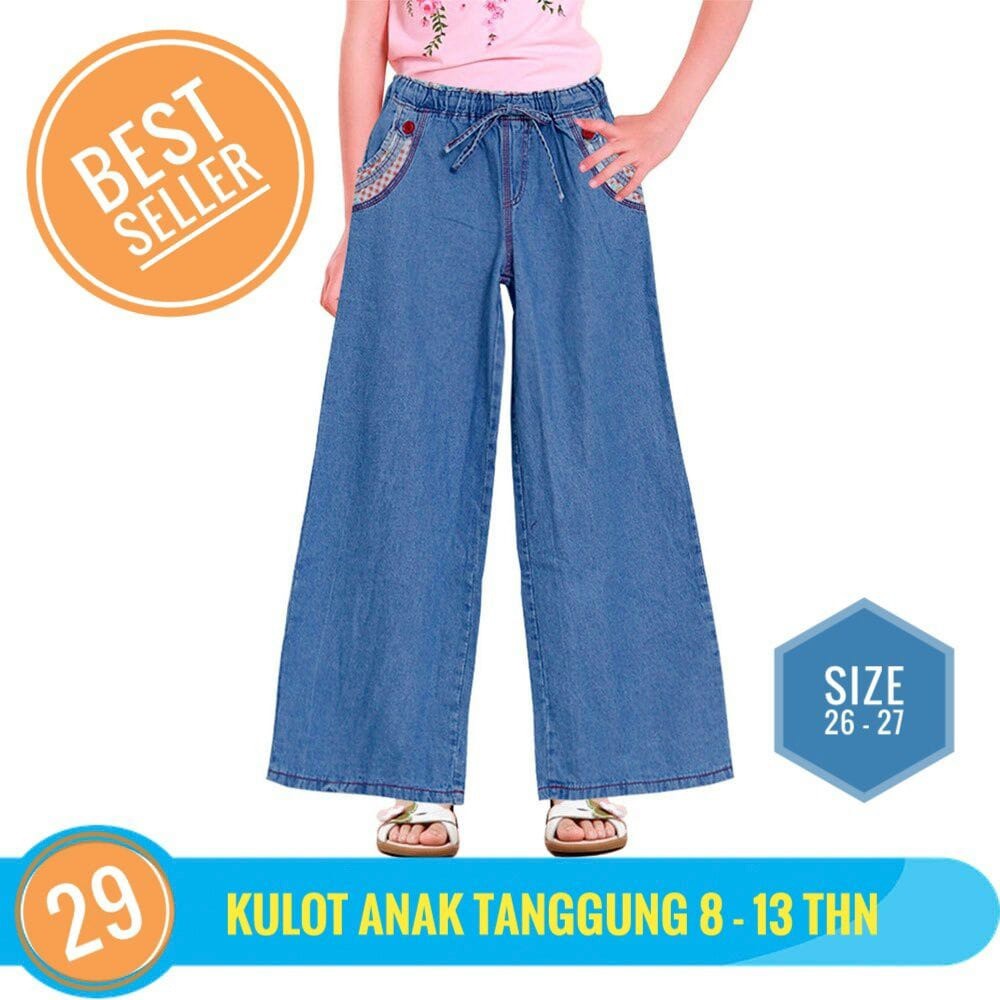 Jual beli online aman dan nyaman hanya di tokopedia. Rp 82 500 harga khusus. Celana kulot jeans anak terbaru untuk usia 8 12 tahun berbahan soft jeans yang nyaman dipakai dilengkapi karet full dipinggang dengan motif dan dua kantung dipinggang model celana kulot yang trendy dihiasi kancing dikantung terlihat cantik dipakai. Cari produk celana jeans anak perempuan lainnya di tokopedia.