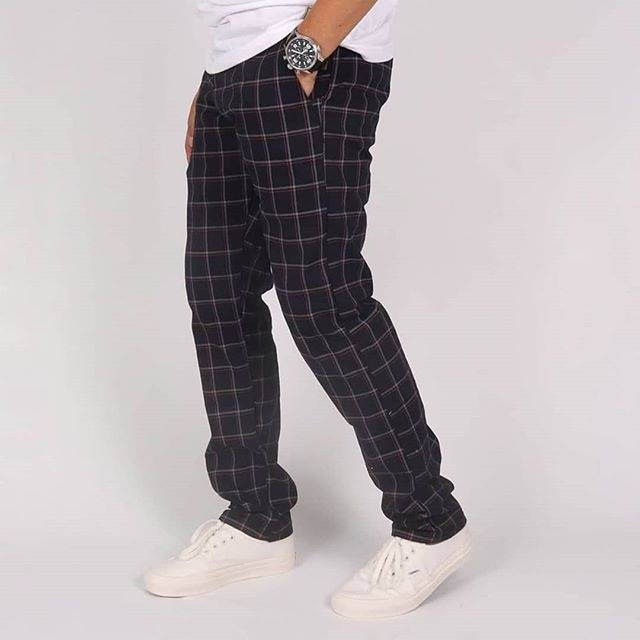 Celana tartan hitam pria. Biasanya celana jenis ini dipakai oleh pekerja kantoran atau untuk menghadiri acara yang bersifat formal walau tak jarang untuk keperluan santai celana model ini bisa juga digunakan. Free ongkir bisa cod. Pemilihan celana panjang pria dapat disesuaikan dengan kepribadian atau pun acara yang akan anda datangi. Karena warnanya yang hitam celana jeans ini terlihat lebih formal sehingga bisa anda pakai ke kantor.
