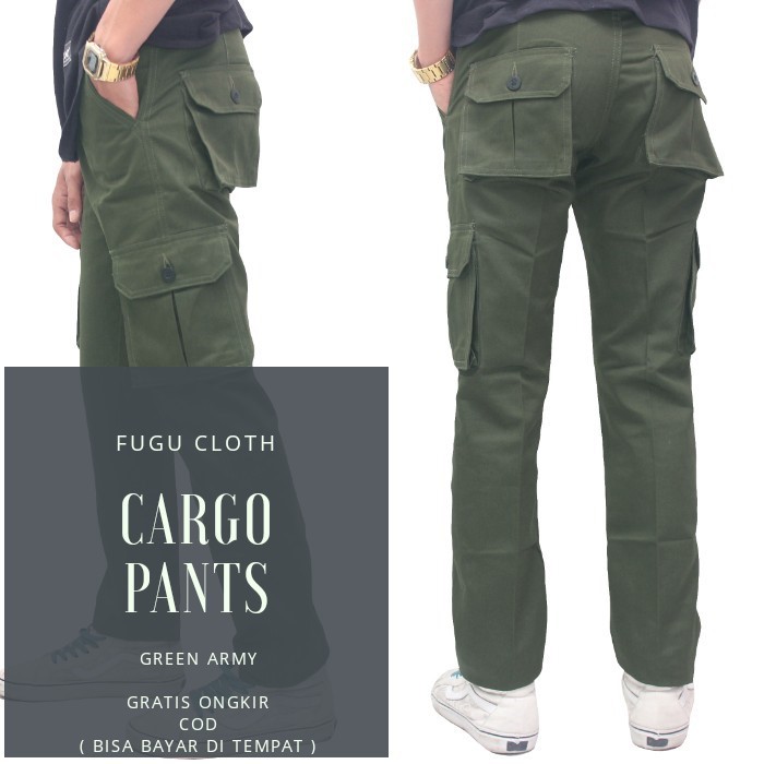Celana cargo ini terbuat dari material kain ripstop dengan kualitas bagus yang tahan lama kuat nyaman dipakai dan tidak terasa gerah. Baik itu anak kecil remaja hingga orang dewasa. Jual beli online aman dan nyaman hanya di tokopedia. Umumnya terdiri dari 6 kantung yaitu 2 kantung di sisi kanan dan kiri dan 2 lagi di bagian belakang celana.